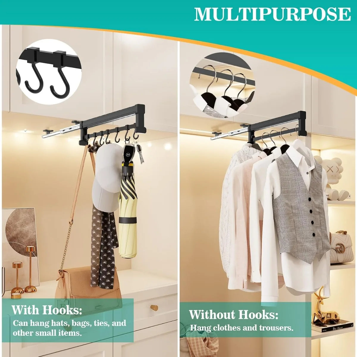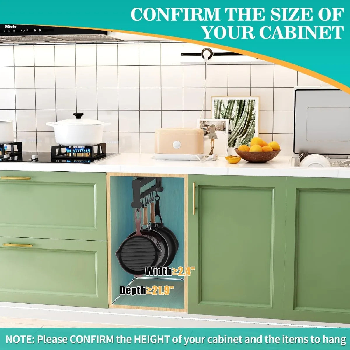 Adjustable Pot Rack With 7 Hooks Pull Out Pan Organizer