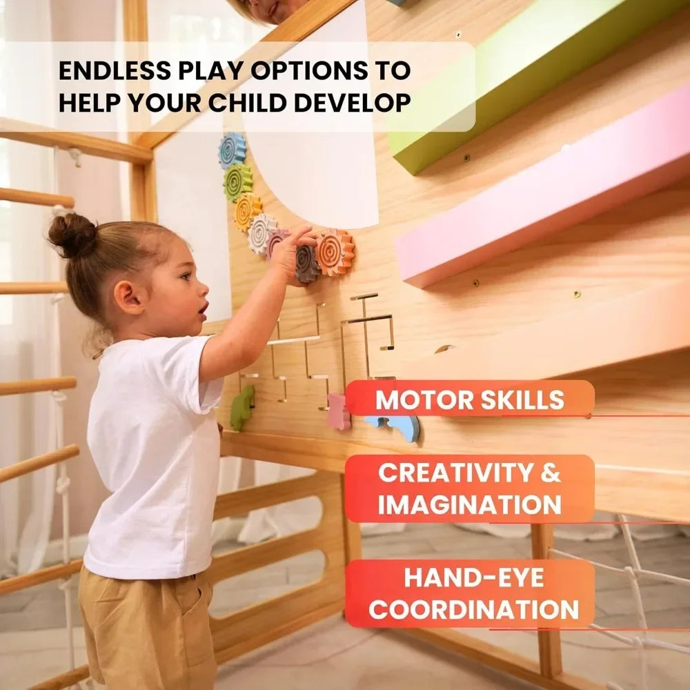 - Grows with your child through 6 climbing options, a colorful play wall, and 3 adjustable height settings—keeping progression engaging as your kid ages from toddler to exploration seeker.