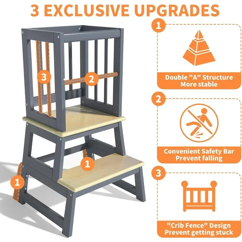 Empower your child to explore the kitchen safely with a Montessori-inspired toddler kitchen step stool that grows with them.