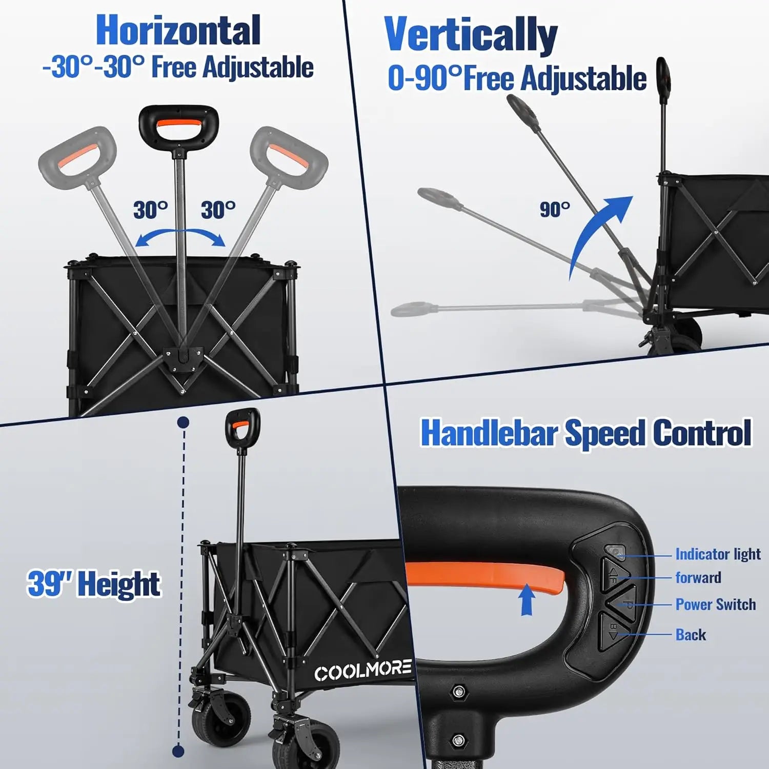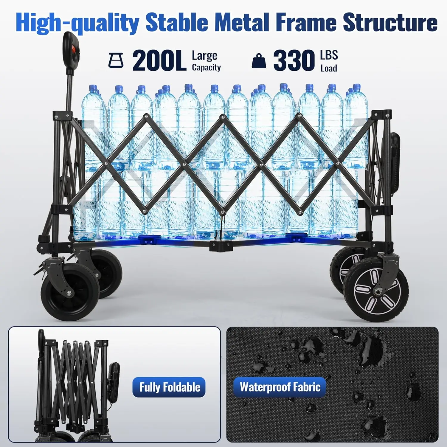 Electric Collapsible Utility Wagons 330lbs Capacity, Carts Foldable with Wheels Brakes Portable for Beach Garden Outdoor