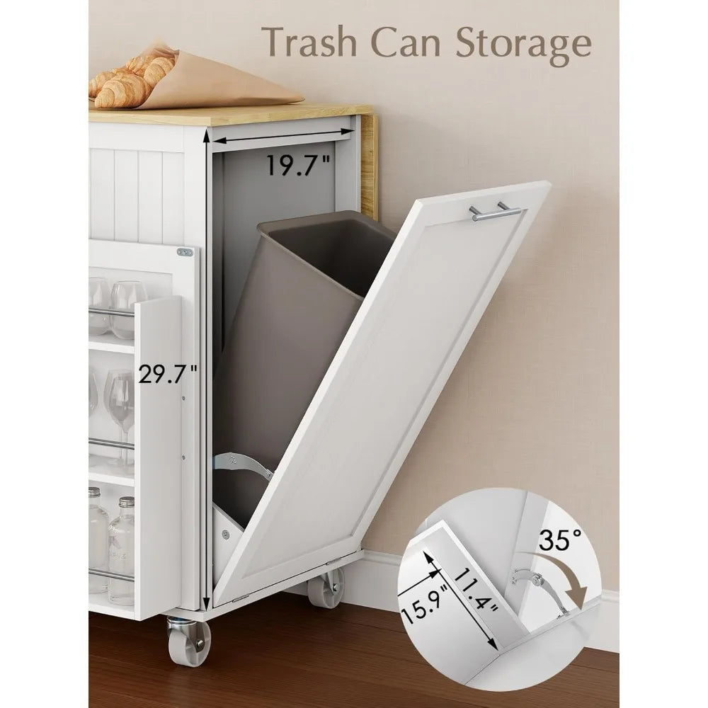 RBXC Kitchen Island With Storage On Wheels And Drop Leaf