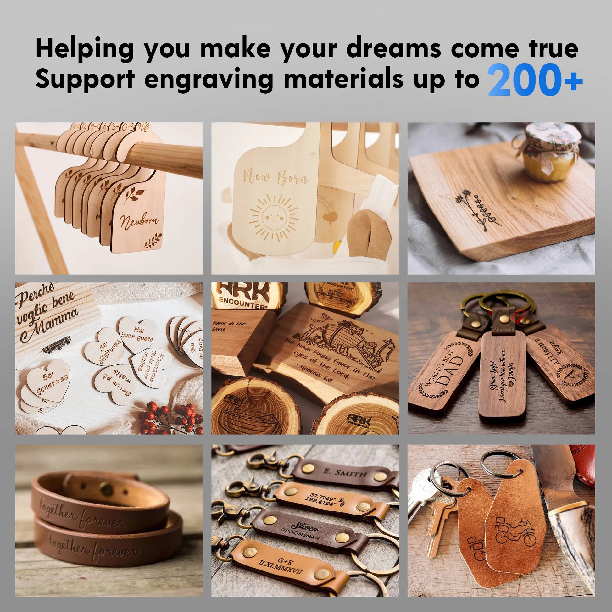 - Powerful 10W laser: You'll get clean, detailed markings on wood, acrylic, leather, rubber, and more, with crisp edges and smooth finishes.
