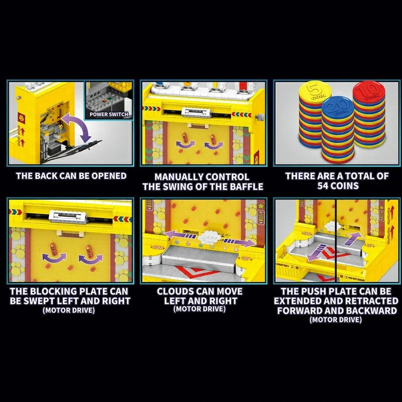 - These small blocks are compatible with LEGO bricks, so you can mix and match to create dynamic coin-pusher machines and scenes.