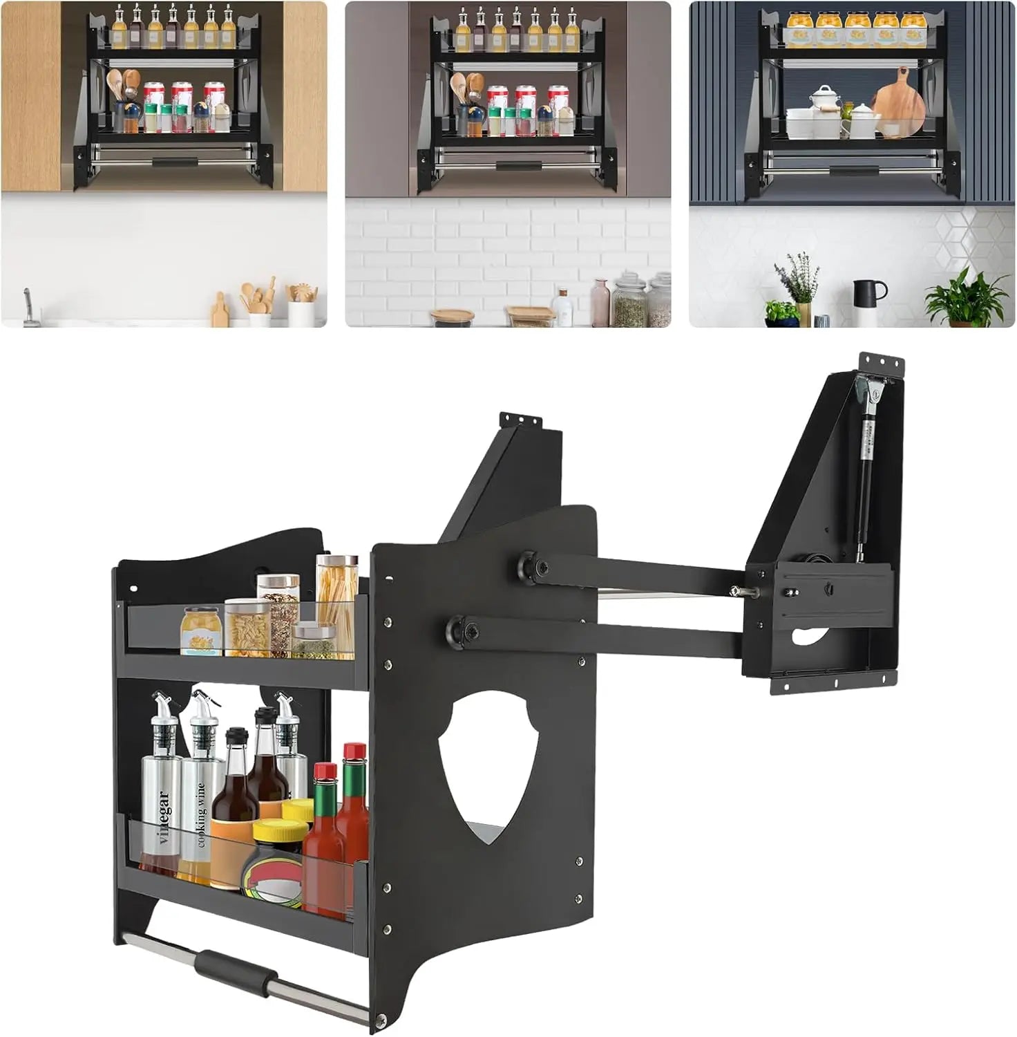 Transform your kitchen storage with a pull-down cabinet organizer that brings height-adjustable convenience to your most-used utensils.