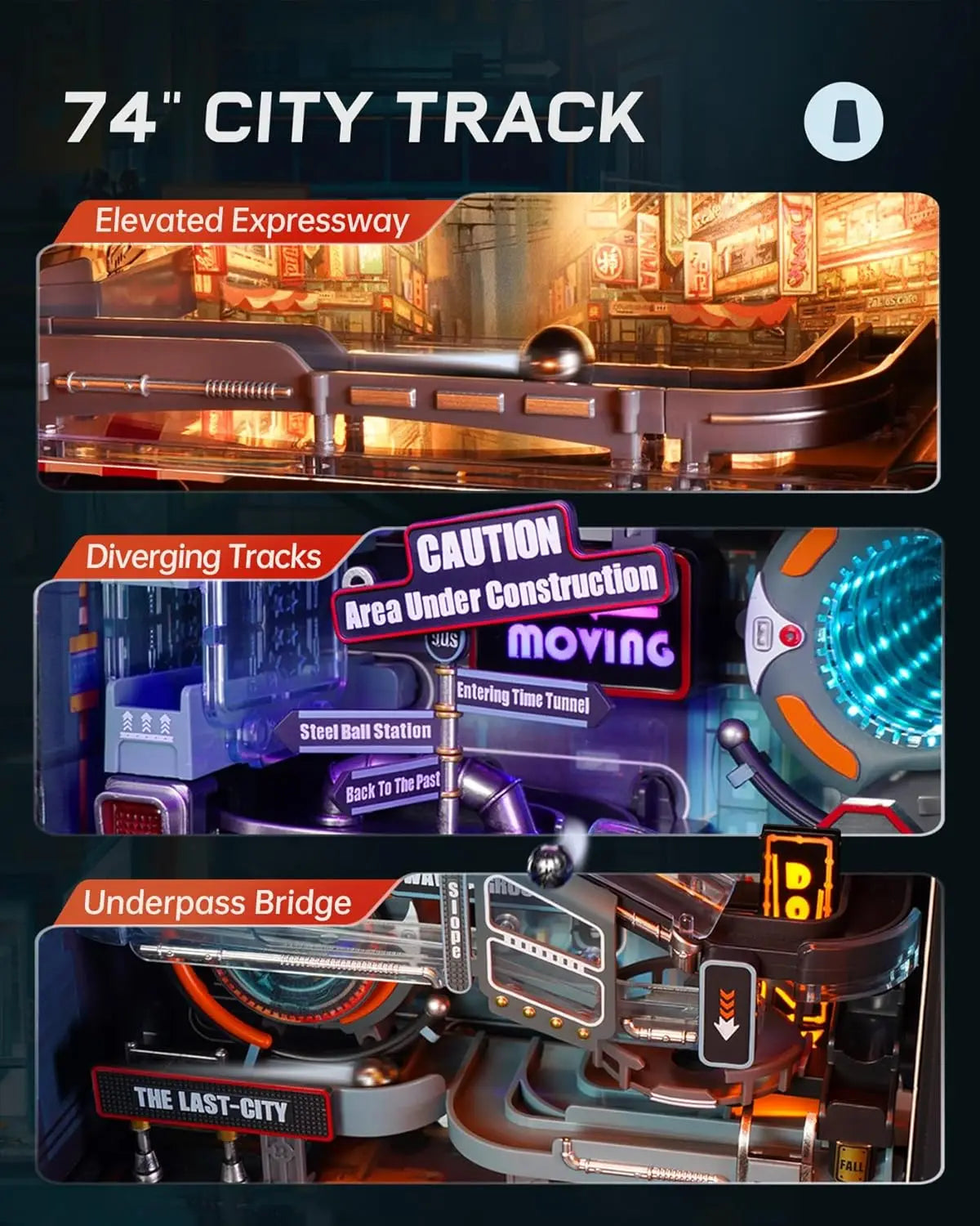 Robotime The Last City Parallel World Marble Run 3D Toy invites you to build a cyberpunk-inspired miniature house marble run, turning puzzle play into kinetic art you admire as you construct.