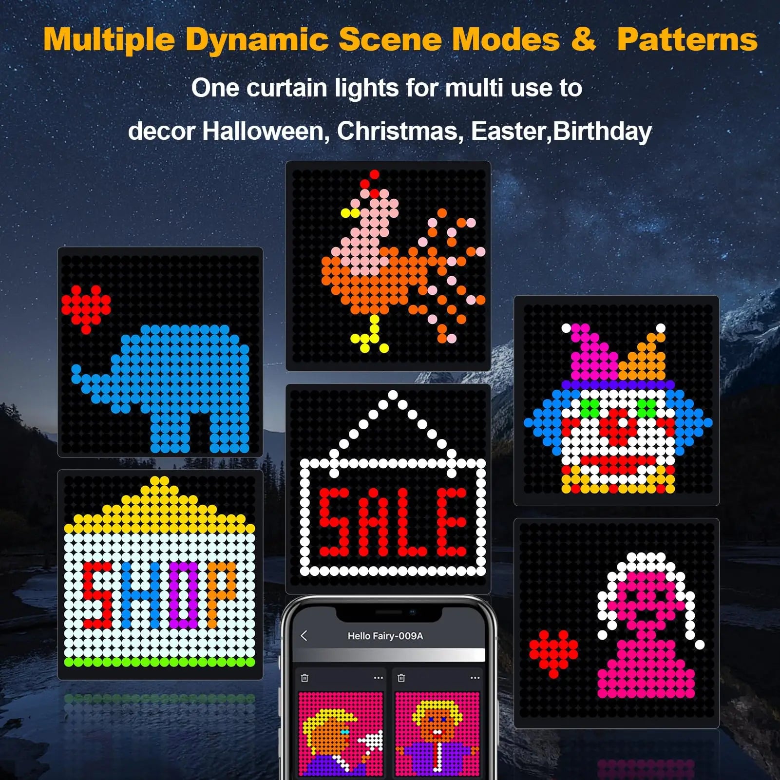 - Schedule or save scenes to automatically match holidays, parties, or cozy evenings from your smartphone, with smooth fades and dynamic presets.