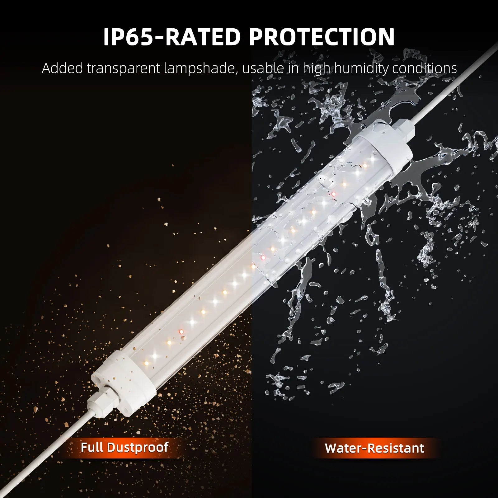 - IP65 waterproof lampshade with a PC transparent cover protects against humidity and splashes for safe use in high-moisture spaces.