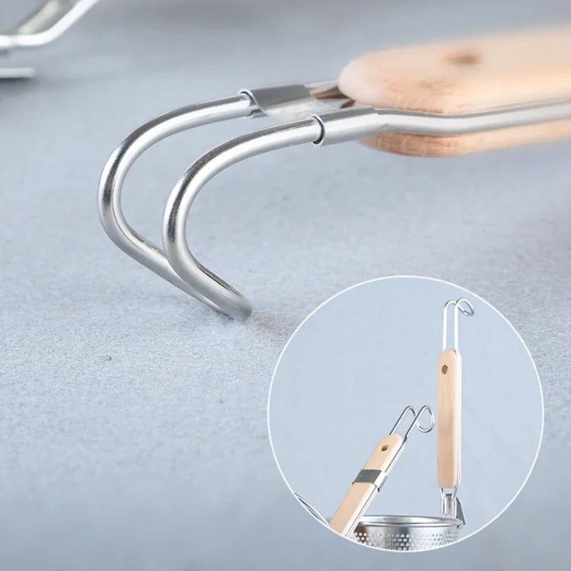 - Wooden handle gives you a secure, cool-to-the-touch grip while you drain hot water.
